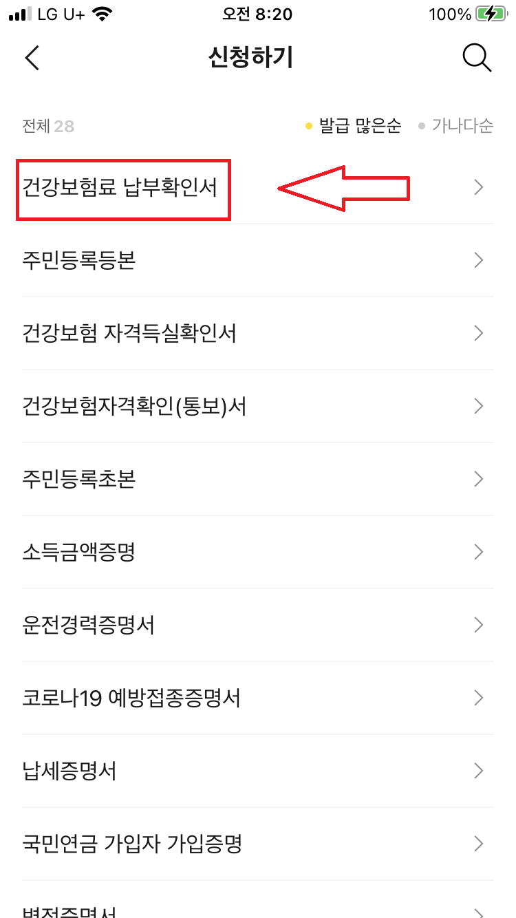 2. 홈페이지에서 건강보험료를 검색하면 건강보험료 납부확인서가 나옵니다.