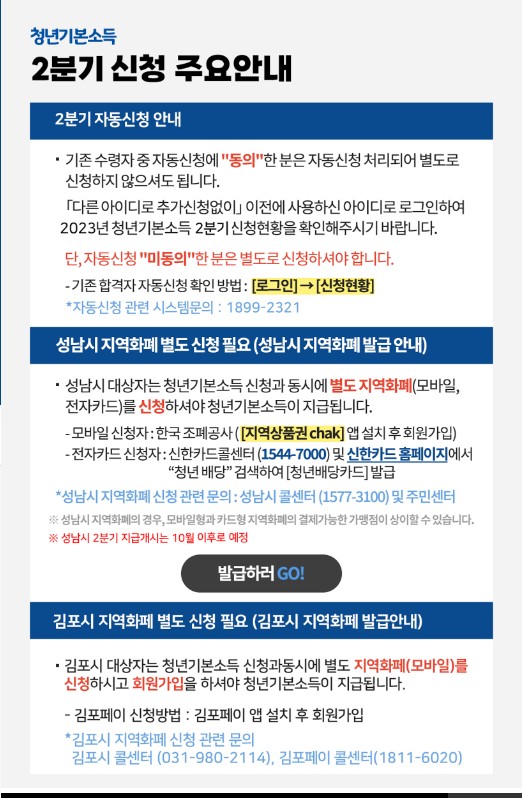 지역화폐 카드 발급자의 경우 이름, 생년월일, 휴대폰 번호가 일치해야 기존 카드에 경기도 청년기본소득이 지급됩니다. 신청 전 지역화폐 사이트 또는 앱에서 해당 정보들이 일치하는지 꼭 확인하시기 바랍니다.