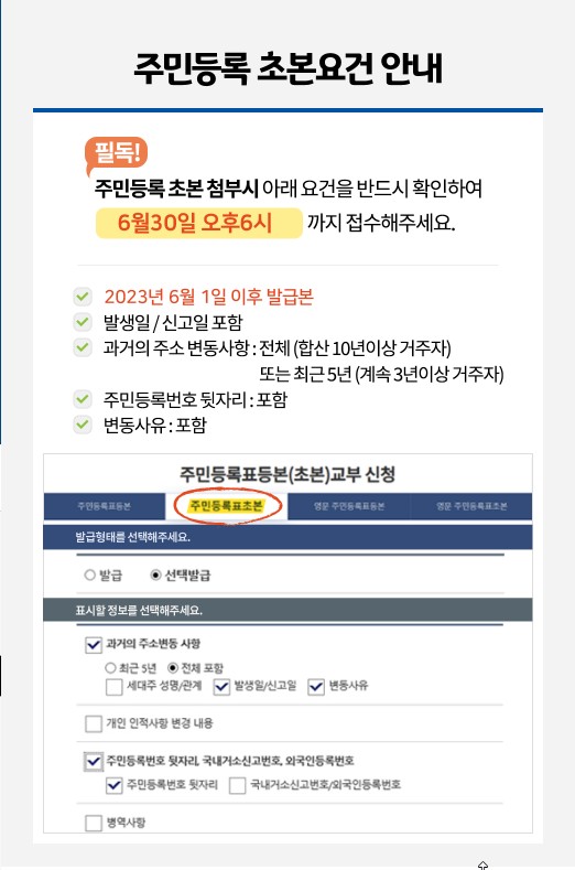 3. 주민등록초본 첨부(23년 6월 1일 이후 발급본) 또는 마이데이터로 자동제출