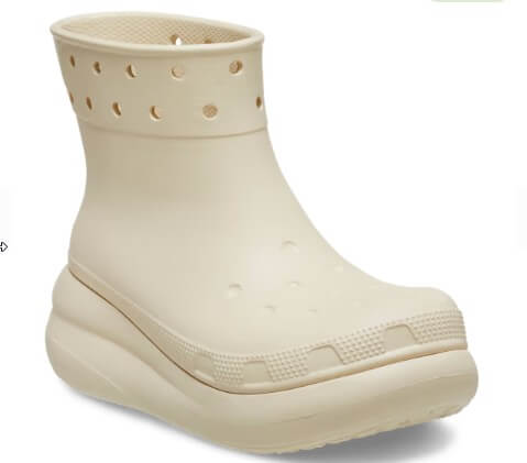 크록스는 샌들로 유명한 브랜드지만 레인부츠도 만듭니다. 크록스의 레인부츠는 발목 위까지 올라오는 크기에 크록스 특유의 홈이 나있는 디자인이 특징입니다. 입구 부분에는 구멍이 뚫려 있어 비가 많이 오는 날 보다는 조금 오는 날 패션을 챙기면서 신기에 매우 좋습니다. 크록스는 발볼 부분이 크게 나와서 편하기로 유명한데, 레인부츠 또한 발 공간이 넓어서 신기 편안합니다. 또한 바닥 부분이 높아서 비가 굳이 깔창이 필요 없는 것 또한 특징입니다. 현재 크록스의 레인부츠는 약 9만 원 내외로 구매할 수 있습니다.